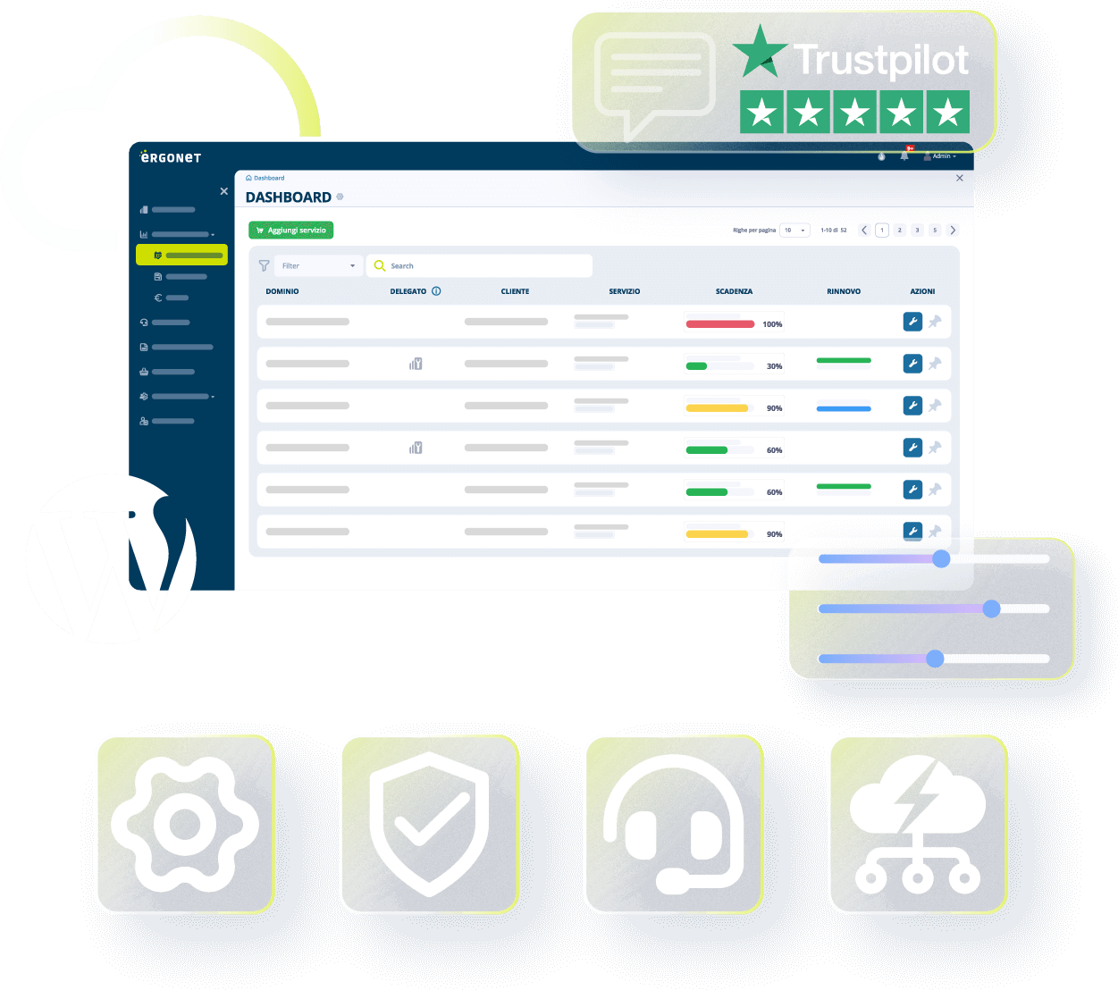 Con il cloud hosting multidominio gestito di Ergonet avrai a disposizone la potenza e la sicurezza di una piattaforma cloud dedicata, ma la gestione dei servizi di hosting per una web agency o un cliente finale, rimarrà semplice come quella di un qualsiasi servizio di hosting condiviso.